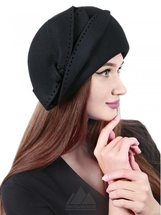 Берет «Калерия» - женский головной убор из натурального шерстяного фетра. Оригинальная модель с объемной закругленной тульей. Украшением служит красивая композиция сбоку. Подкладка из саржевой ткани, удобную посадку обеспечит трикотажный стабилизатор размера.