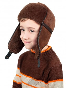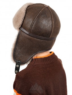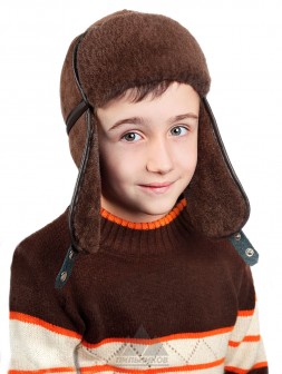 Школьник / Шапка-ушанка из мутона на дубленочной коже