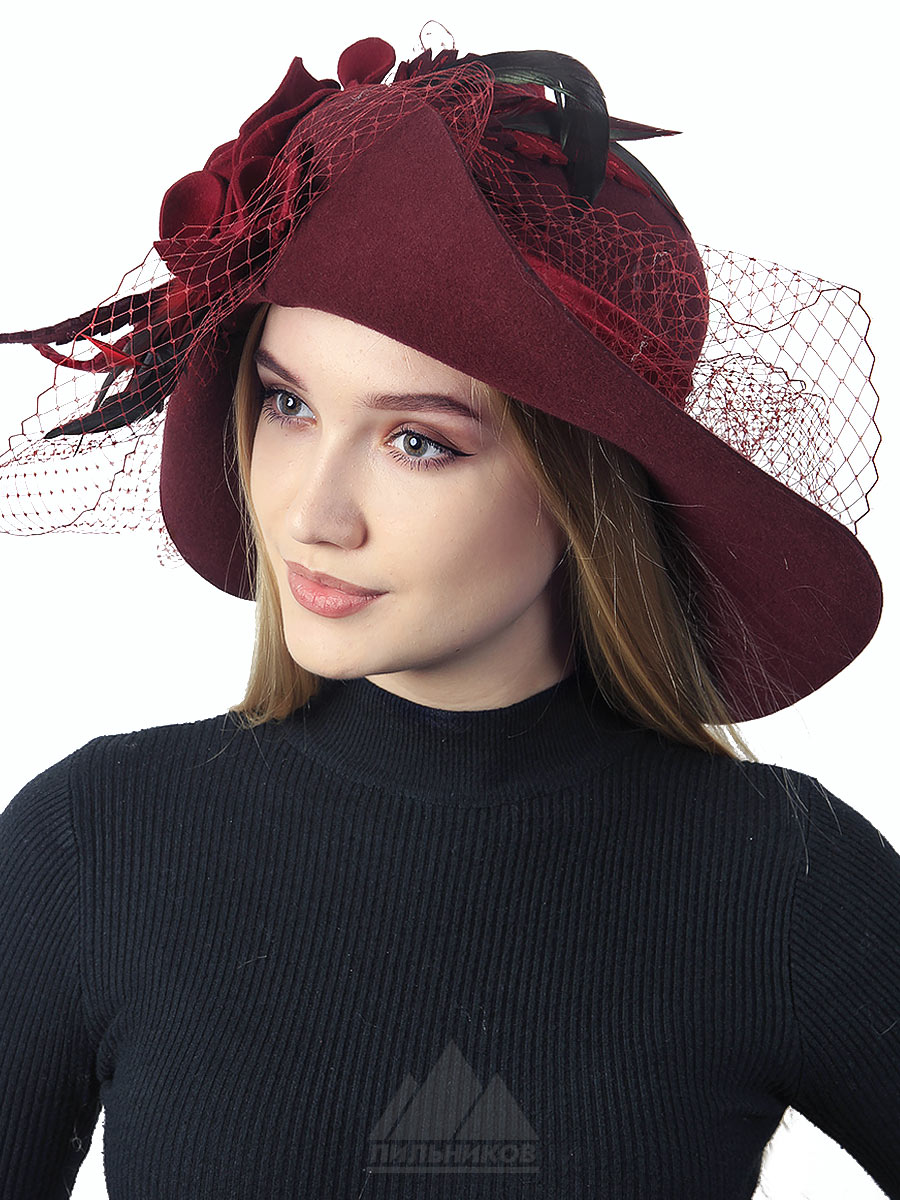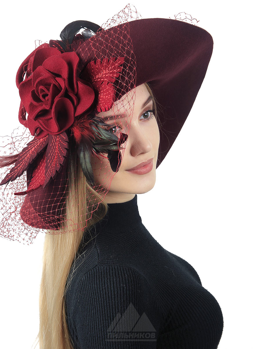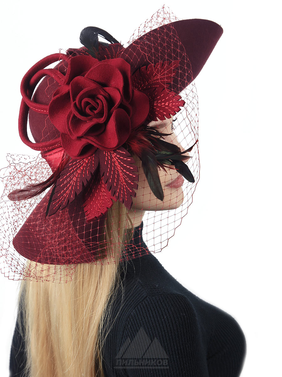 Надев красивую шляпку - можно мигом преобразиться до неузнаваемости, и в этом Вам поможет наша новая дизайнерская работа «Белладона». Шляпа с широкими полями выполнена из шерстяного фетра. Материал имеет плотную приятную на ощупь фактуру высокого качества. Тулья оснащена подкладкой из саржи и регулятором размера, что обеспечивает комфортную посадку. Украшает головной убор изящная декорация в виде розы из фетра с дополнением перьев и вуали, благодаря чему изделие приобретает оригинальный вид. Следует обратить внимание на изобилие оттенков в палитре цветов, Вы обязательно найдете себе по вкусу. Эта роскошная композиция позволит создать сногсшибательный образ, от которого будут в восторге мужчины, и которому позавидуют представительницы слабого пола. Побалуйте себя и насладитесь приятной покупкой.
