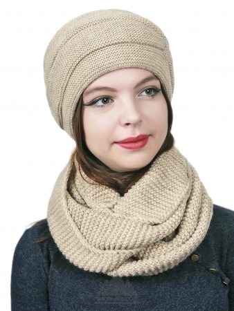 Демисезонный женский комплект «Жанетта» из трикотажа. В шерстяной трикотаж добавляется акриловое волокно, благодаря этому материал приобретает прочную текстуру и эластичность. В набор входят шапочка и объемный снуд. Подкладка оформляется из трикотажа, что делает тулью более теплой и плотной. Данный гарнитур прекрасно впишется в гардероб как базовый элемент для повседневного пользования. Не раздумывайте о правильности выбора и оформляйте заказ.