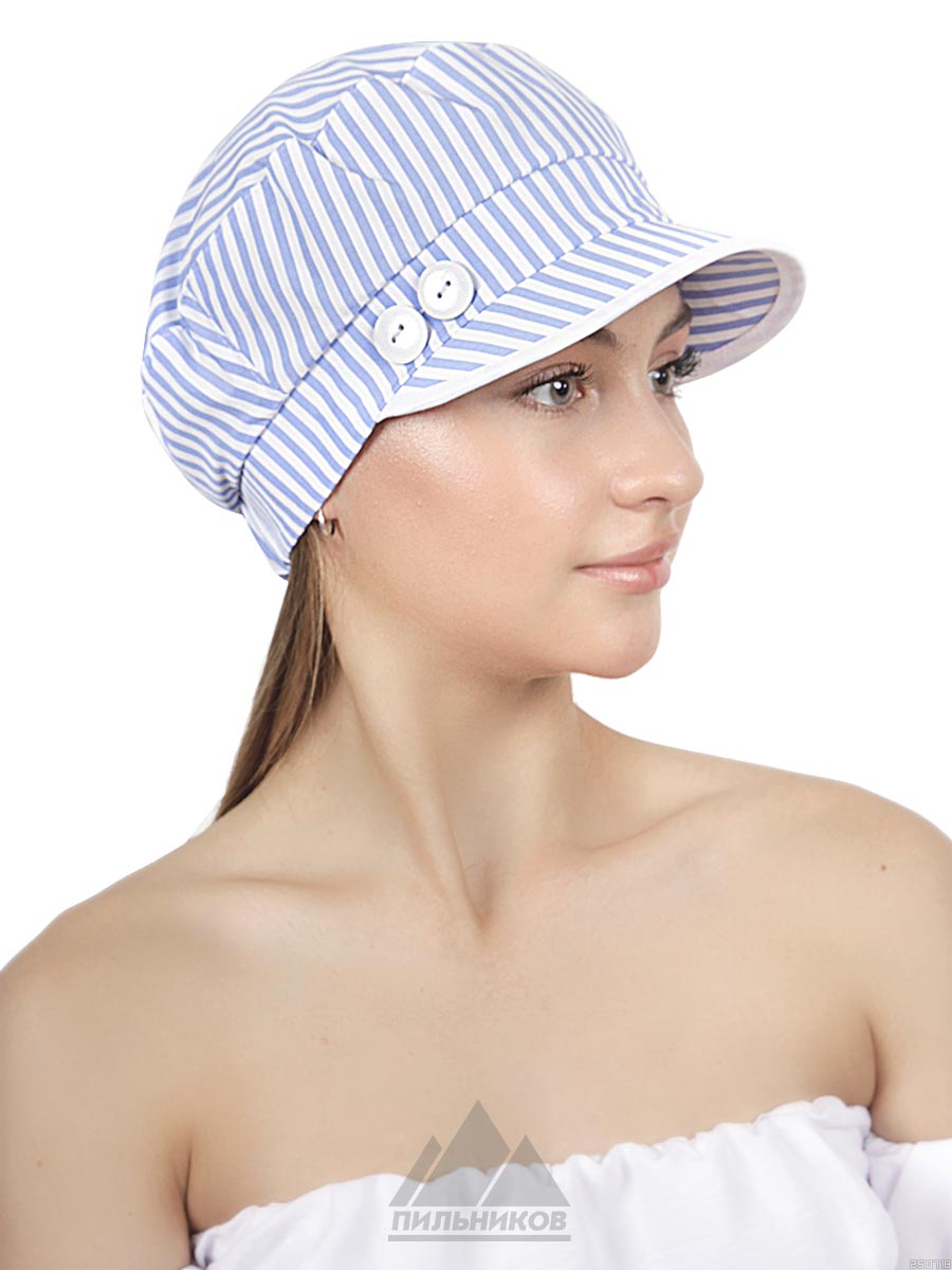 Женский летний картуз «Берни» из хлопка. Хлопчатый материал достаточно прочный, отличается высокой стойкостью, не деформируется под влиянием света и воды долгое время. Изделия из хлопка идеально подходят для летнего периода потому, что ткань очень легкая, но при этом отлично защищает от солнечных лучей и выводит влагу. Данная модель выполнена в традиционной форме с полосатым окрасом и украшена пуговицами над козырьком. Втачанная резинка на затылочной части, обеспечит надежную фиксацию. Картуз «Берни» отлично подойдет под классическую стилистику одежды и порадует своей практичностью. Не сомневайтесь в правильности выбора и оформляйте заказ.
