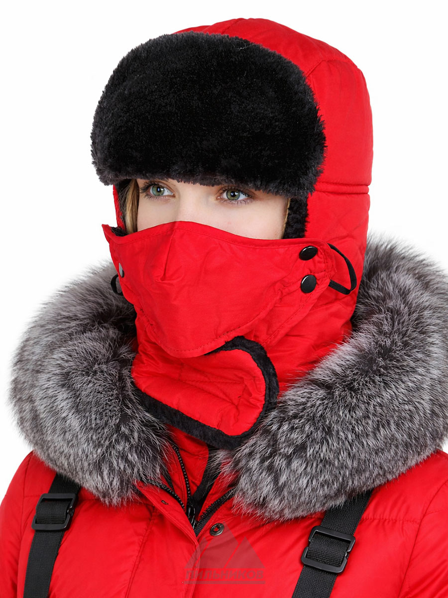 Ушанка с маской из плащевки с мехом Лыжница