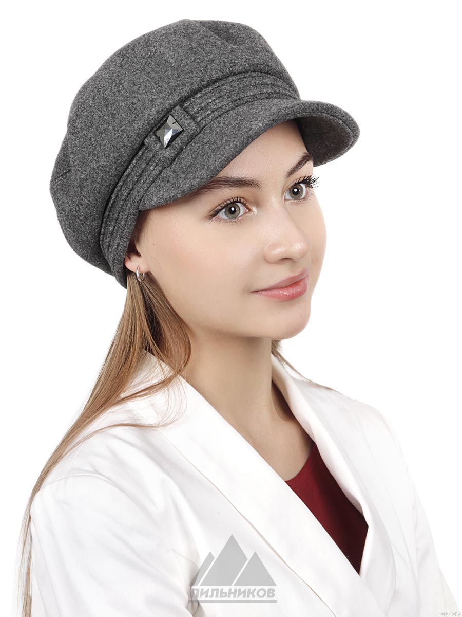 Картуз «Сэнди» - головной убор, выполненный из кашемира. Модель с высокой тульей, плоским дном и небольшим козырьком. Стойка украшена по всей окружности складками, сбоку нашиты металлические элементы. Внутри подкладка из флиса. Размер фиксируется наружным регулятором.