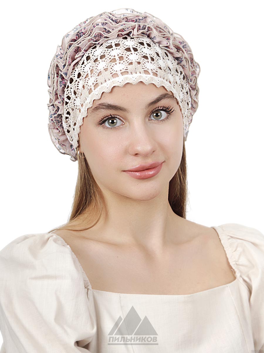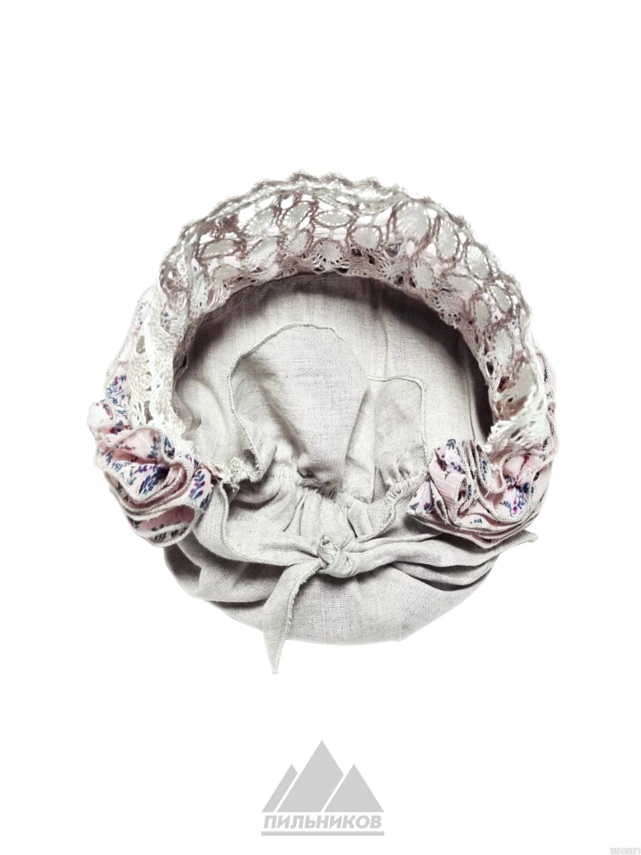 Бандана «Миранда» - женский головной убор из натурального льна. Тулья украшена широкой ажурной вставкой из вологодского кружева и рюшами из шифона. Размер фиксируется благодаря наличию втачанной резинки и наружного регулятора в виде завязок. Использование экологически чистого материала и отсутствие подкладки обеспечивают легкость и комфорт. Летняя бандана «Миранда» дополнит повседневный образ, уберегая голову от солнца.