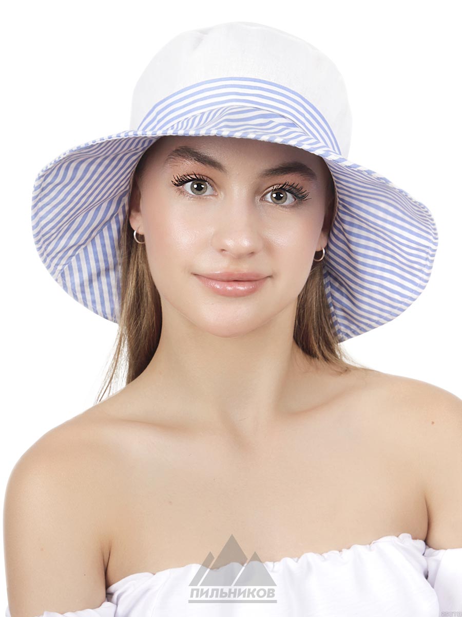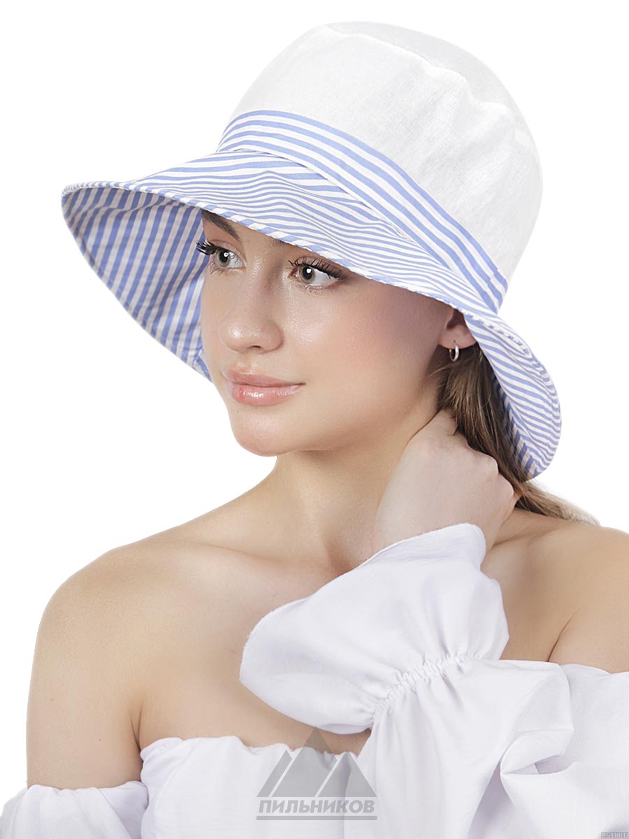 Шляпа с мягким полем на лето из льна в полосочку Эмили