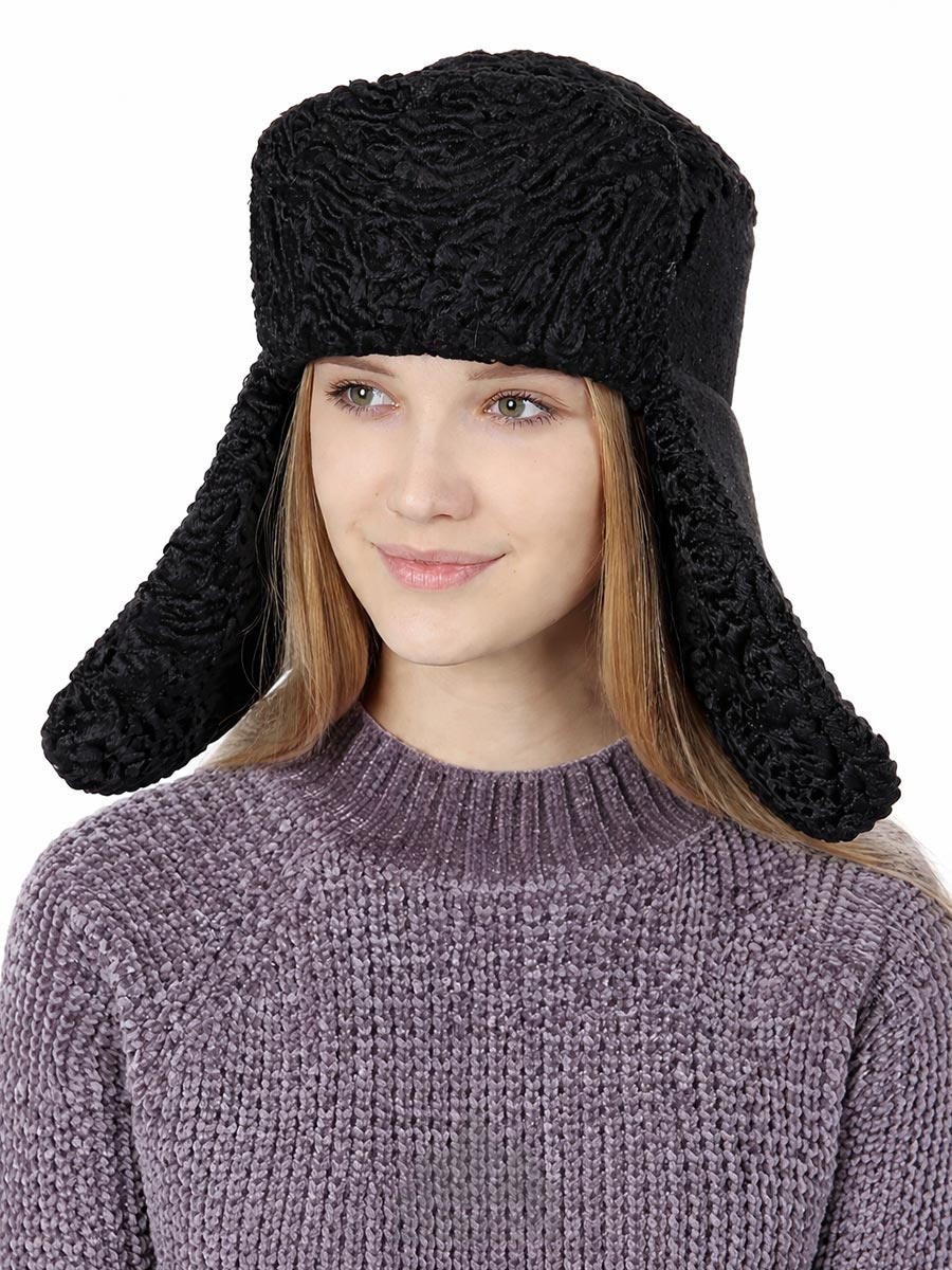 Шапка с ушами из каракуля на тканевой основе Сильва