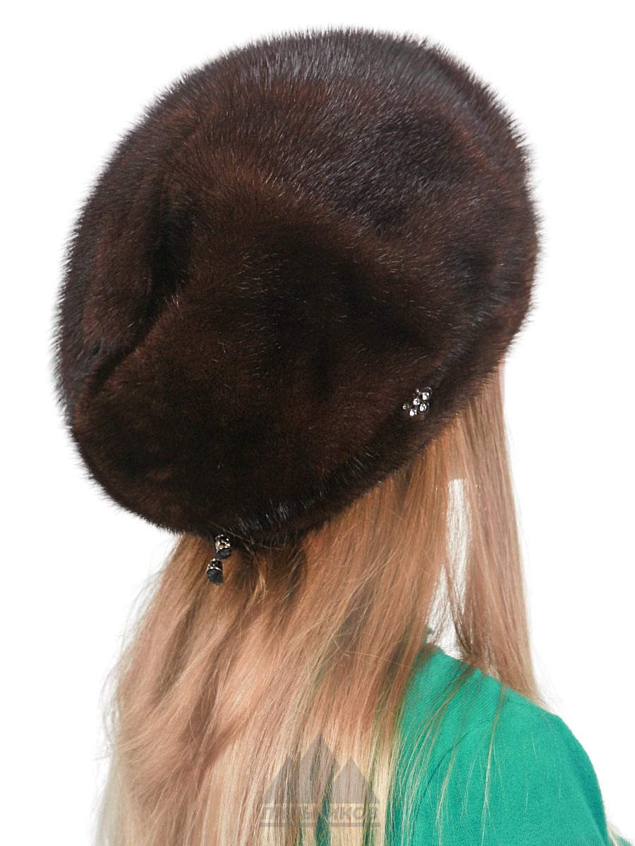 Женский берет «Ариан» из норки. Объемная модель на стойке, украшена брошью со стразами, изготовлена из натурального меха норки, обладает отличными тепловыми свойствами, отвечает высоким качеством и гарантирует длительность в использовании. Помимо всего этого, мех имеет красивый натуральный блеск и на любом изделии выглядит дорого и солидно. Внутри подкладка из флиса, предусмотрен регулятор размера.
