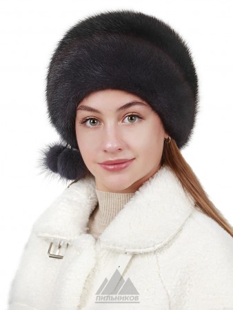 Берет «Эльмира» - женский головной убор из натурального меха финской норки. Объемная модель на формованной основе с украшением в виде меховых помпонов сбоку и аккуратных лепестков и бусин сзади. Внутри подшита утепленная подкладка из стеганой саржи. Удобную посадку по форме головы обеспечивает регулятор размера.