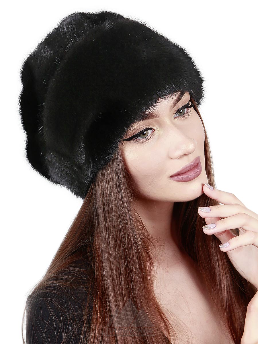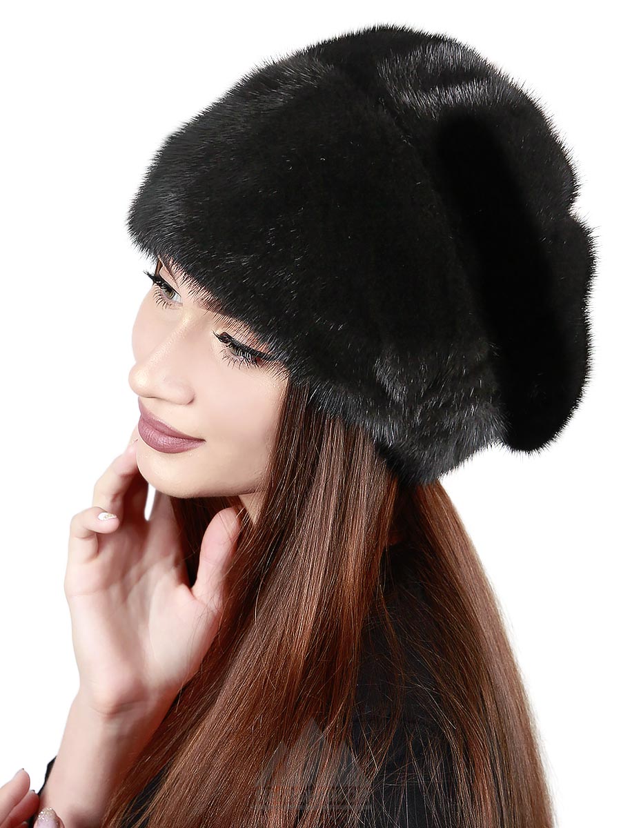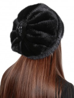Шапка «Одилия» - женский головной убор из натурального цельного меха норки. Высокая тулья спереди оформлена сборкой. Удобную посадку по форме головы обеспечит удобный стабилизатор сзади – трикотажная резинка. Внутри подкладка из стеганой саржи. Задник украшен оригинальной сборкой и вставкой, расшитой бусинами.