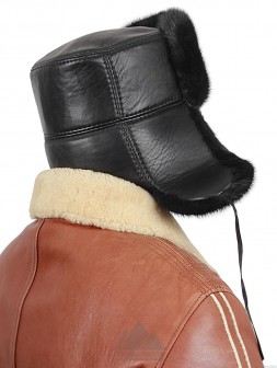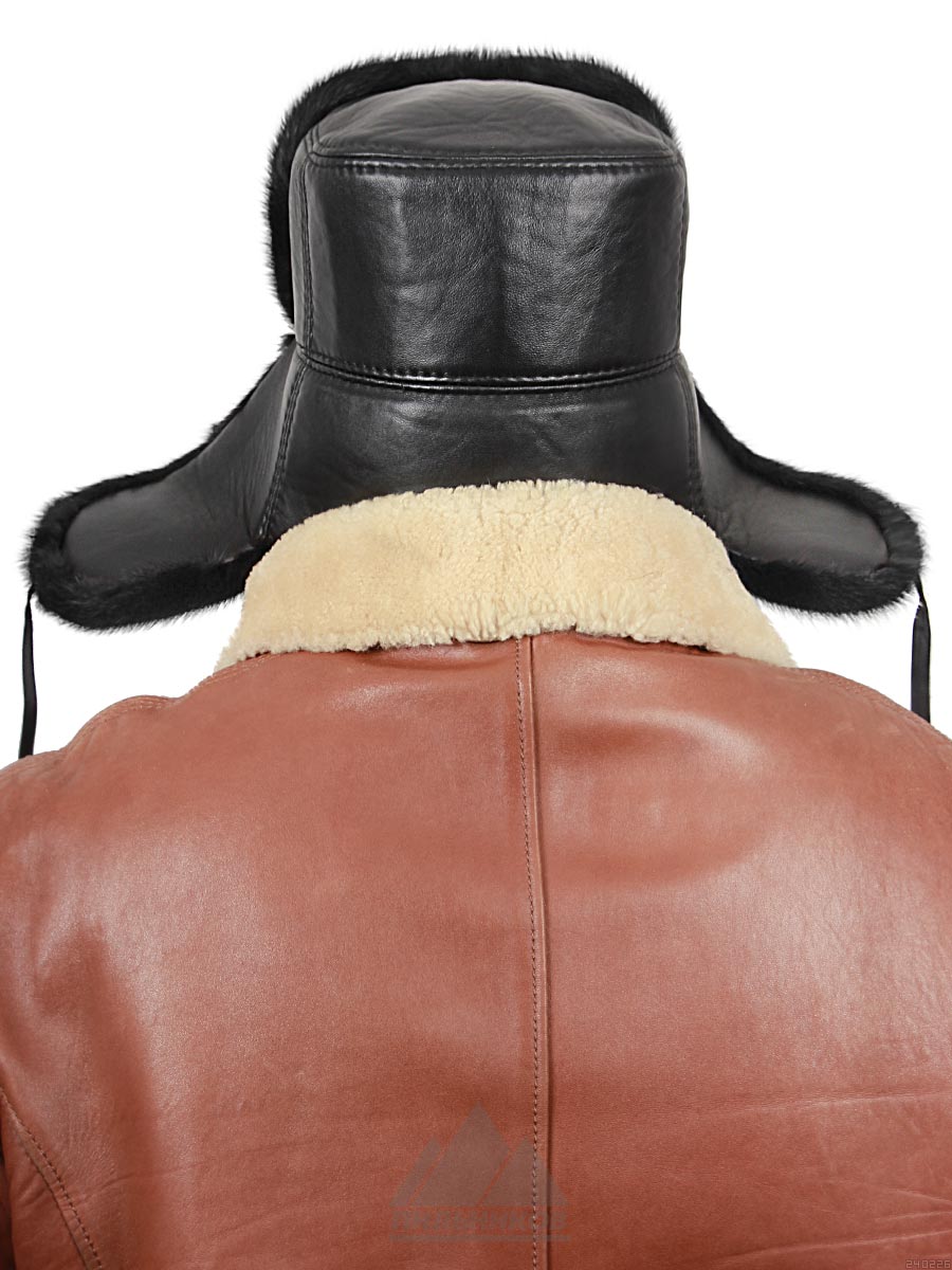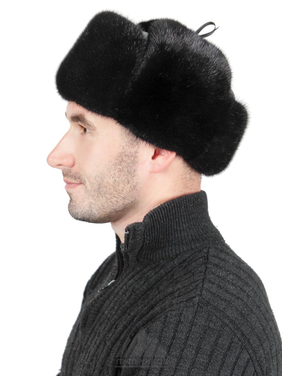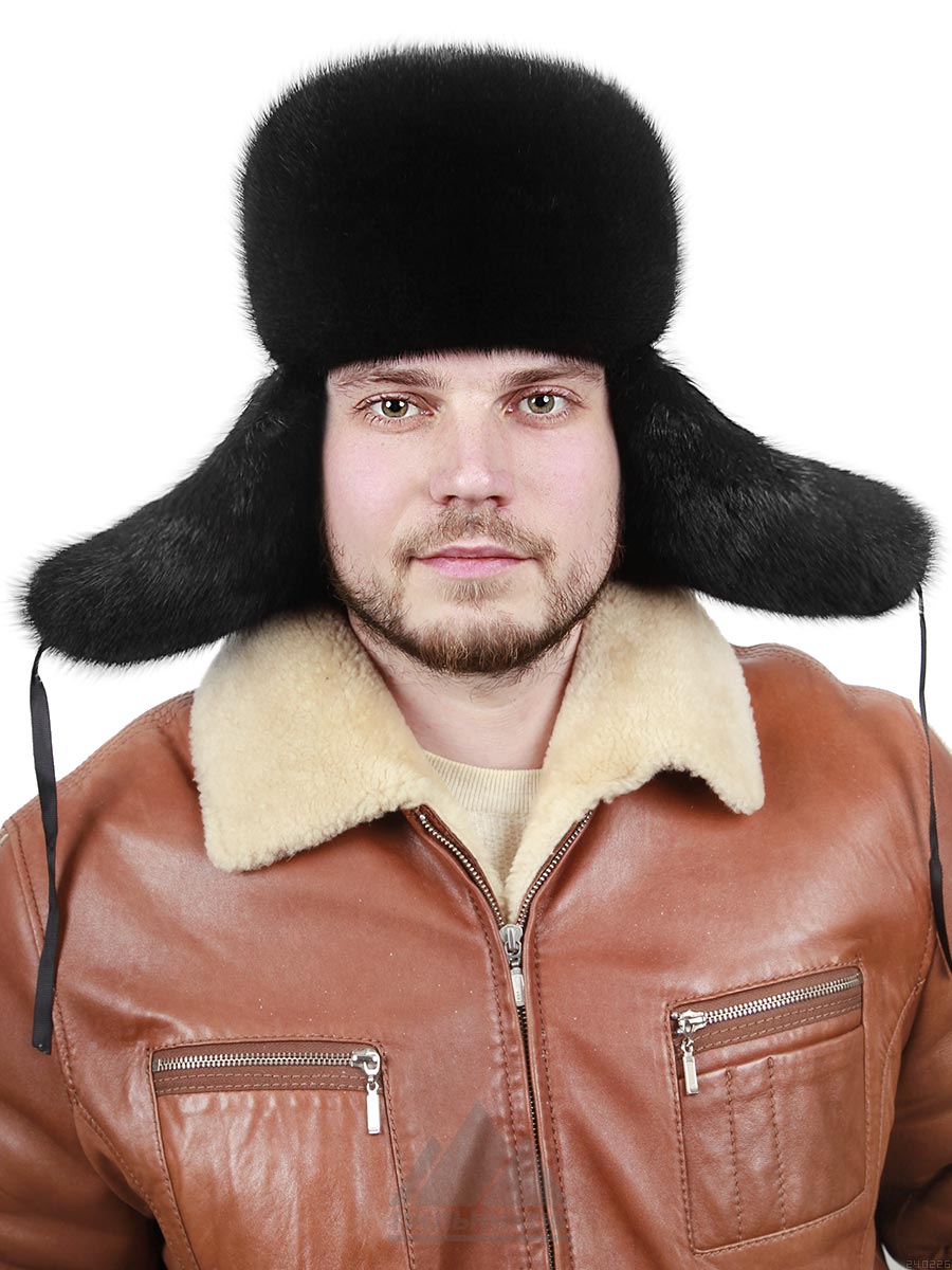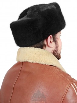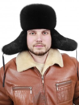 Шапка-ушанка «Родни» - мужской головной убор из натурального меха норки. Модель классической формы, тулья выполнена из высококачественной кожи и продублирована специальным морозостойким поролоном, отвороты на козырьке и укороченных ушках - меховые. В подкладке из стеганой саржи установлен регулятор размера. Ушки можно застегнуть сзади на кнопки. Сзади имеется ремешок с металлической застежкой.