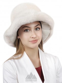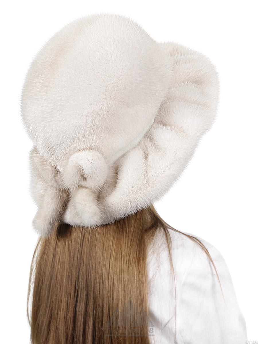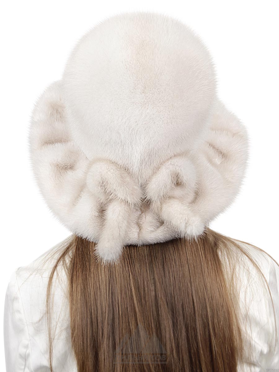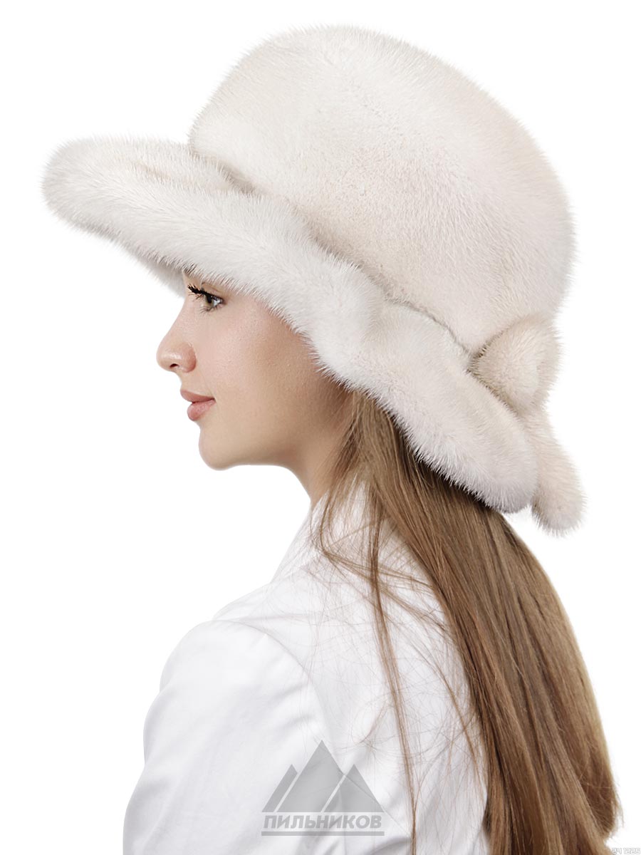 Шляпа «Армель» выполнена из натурального меха норки. Эксклюзивная модель с круглой тульей и широкими волнообразными полями. Размер полей: 6 см. Сзади шляпка украшена декоративным бантом из той же норки. Внутри подкладка из саржи.