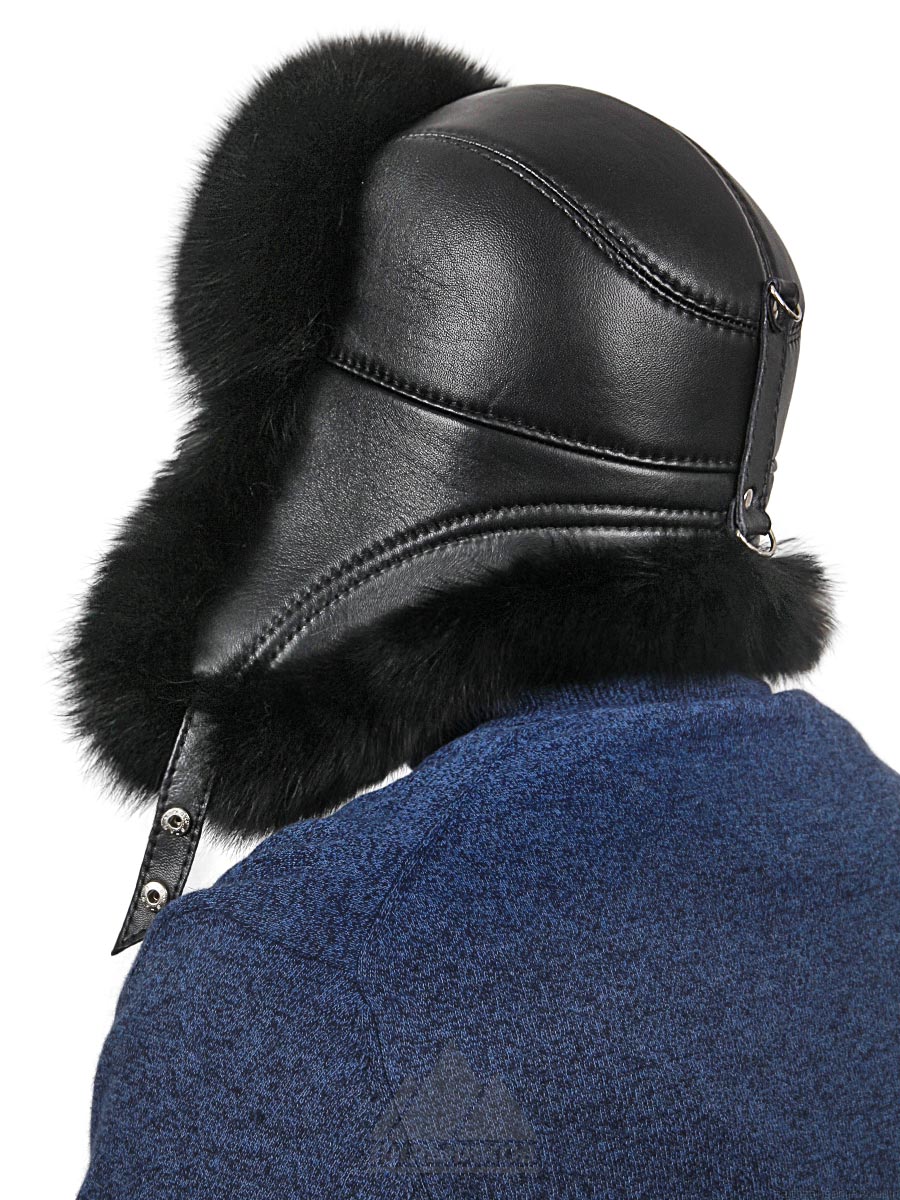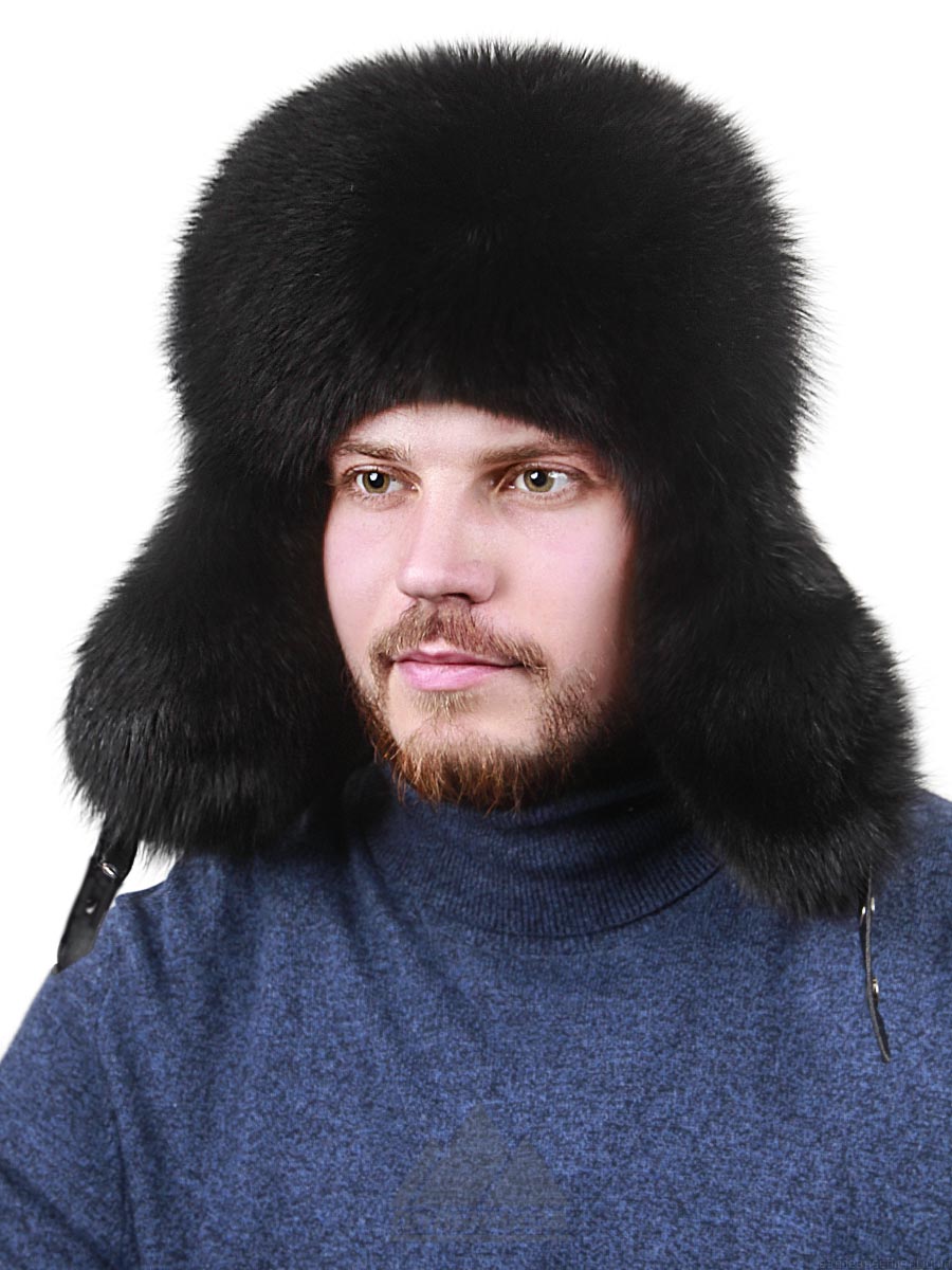Шапка ушанка из песца с натуральной кожей Алияр