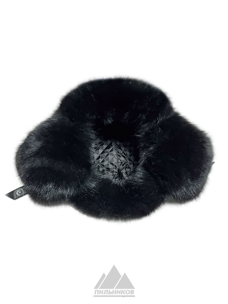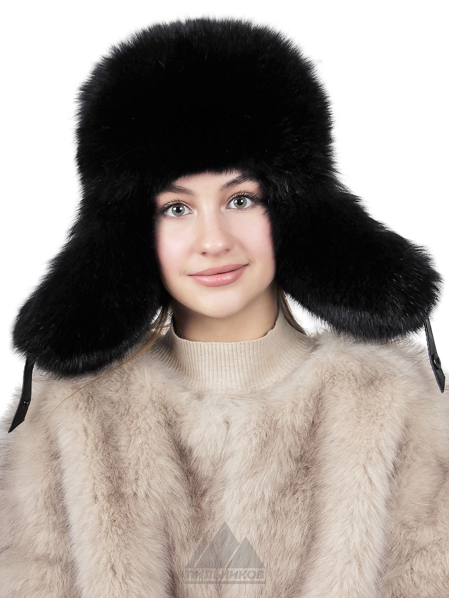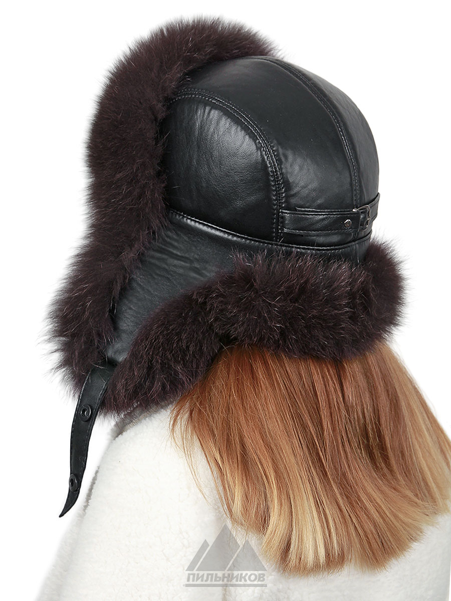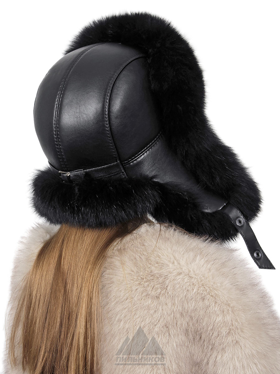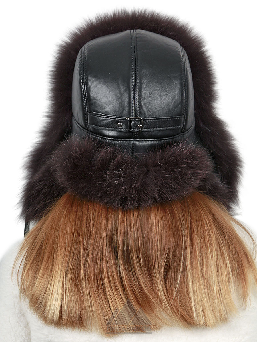 Песцовая ушанка с кожей на застёжках Ленара