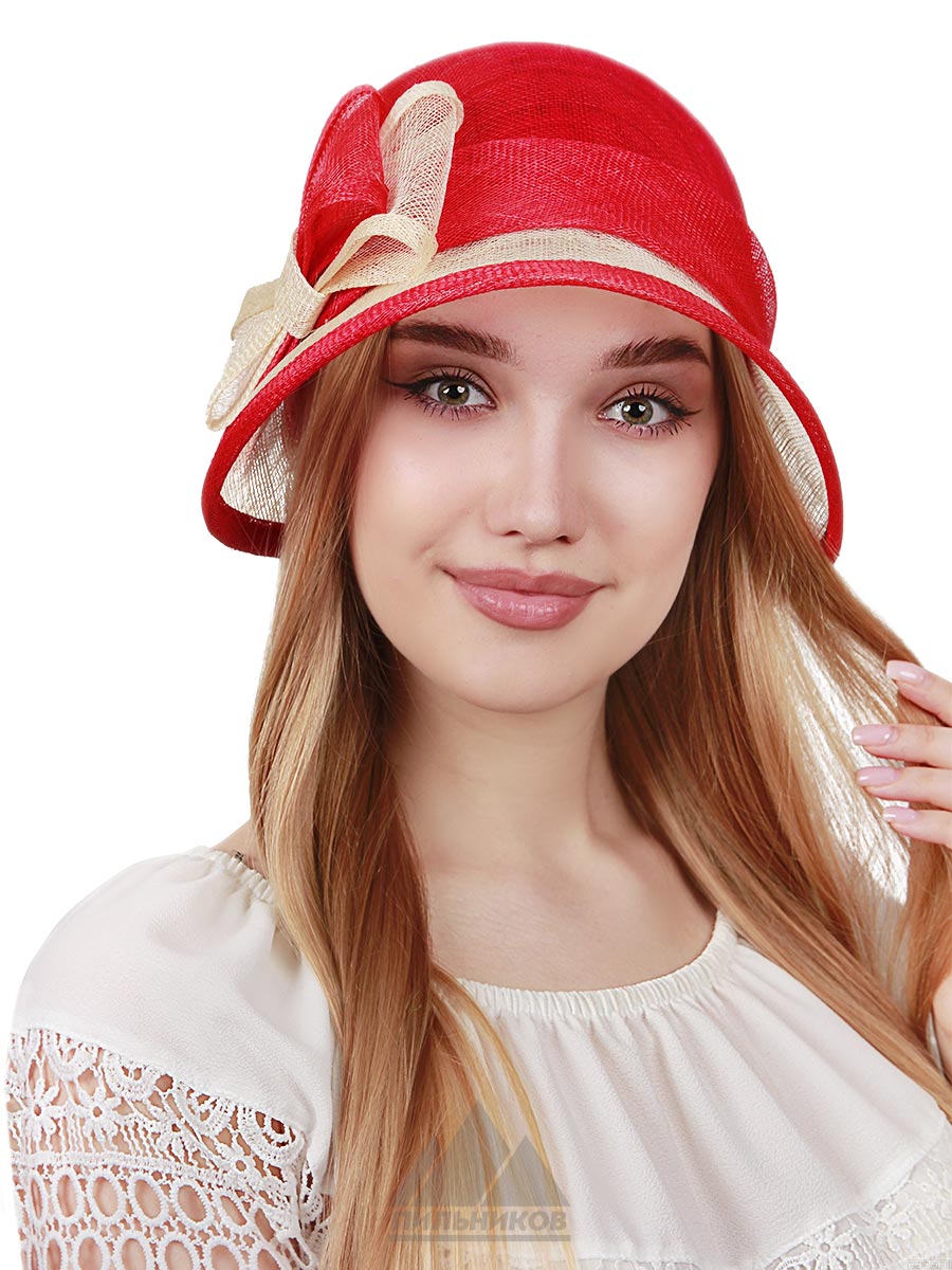 Шляпа «Франческа» из соломки синамей с круглой тульей и малым полем. Двухцветная модель, украшенная сбоку двухслойным бантом. Внутри вшиты ленточки для регулировки размера.