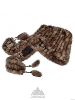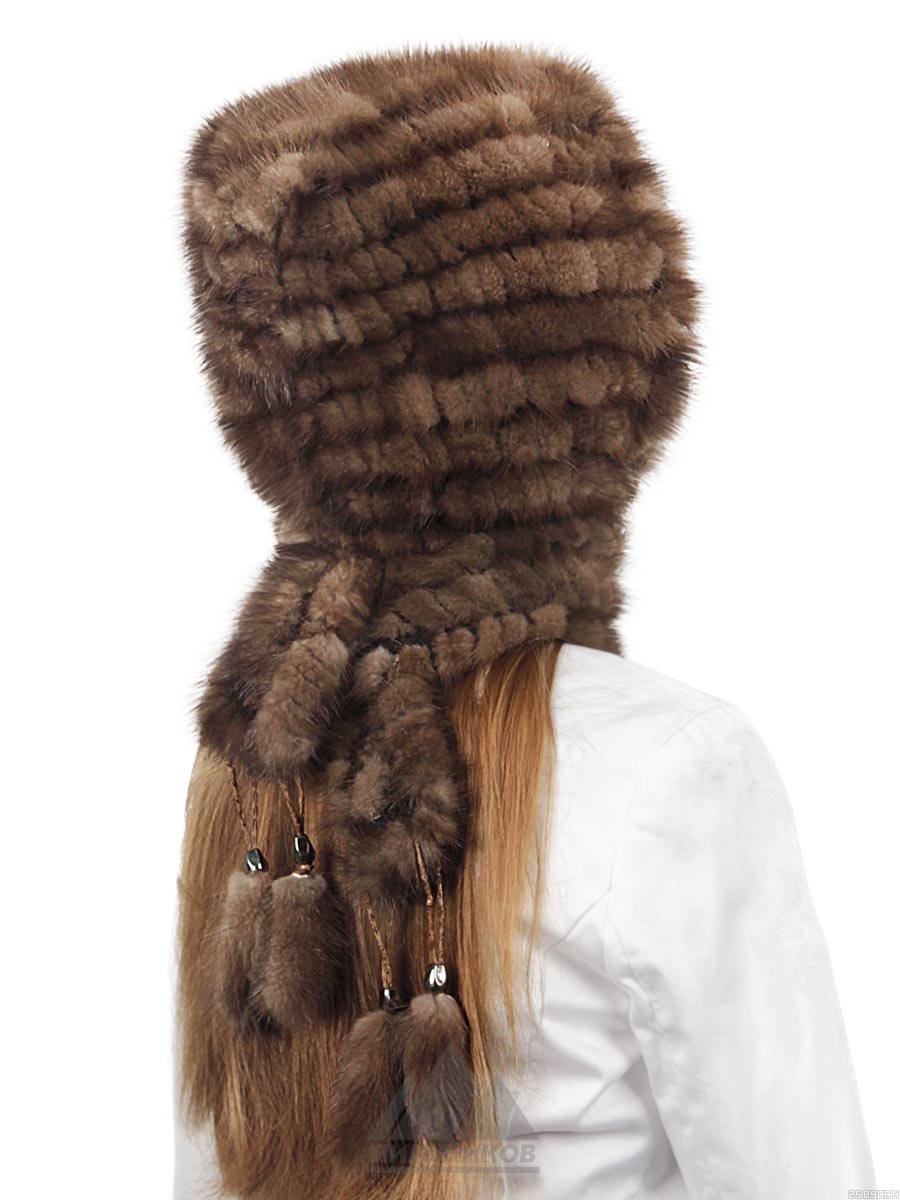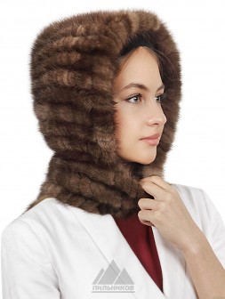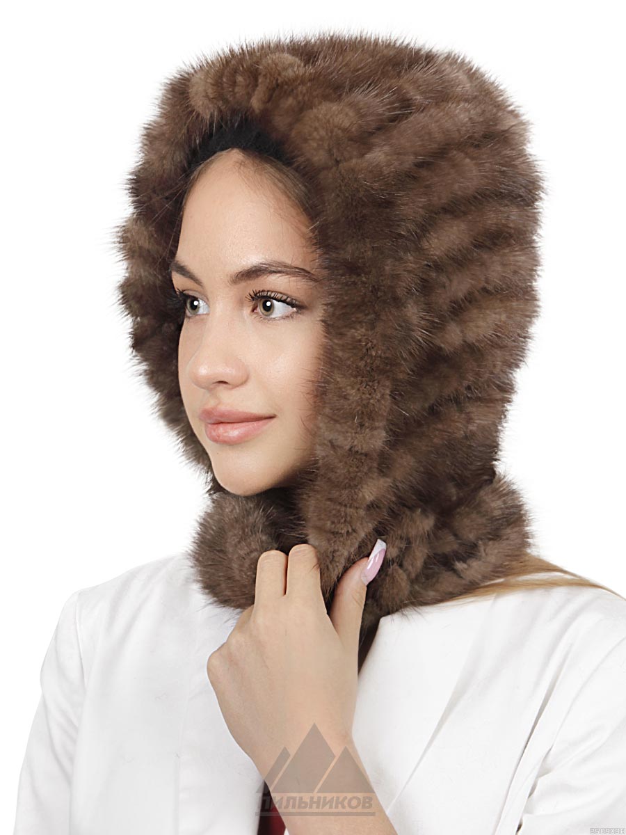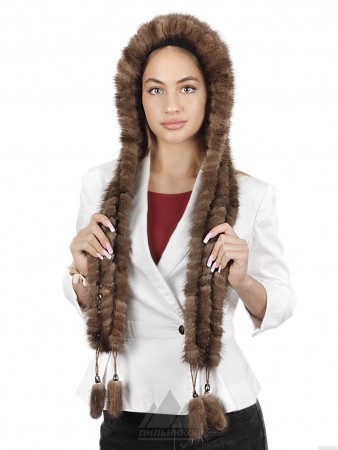 Капюшон «Гленис» - женский аксессуар из натурального меха норки. Объемная и теплая модель, выполненная путем ввязывания ровных меховых полосок в шерстяную основу. Блестящий и благородный натуральный мех норки выглядит всегда презентабельно, не склонен к истиранию и заломам, а густой однородный ворс прекрасно сохраняет тепло и обладает большим сроком службы. Прекрасным дополнением служат полоски шарфа, изготовленные из той же пряжи и меха и удобно фиксирующие изделие на шее. Шикарный капюшон «Гленис» станет удобной альтернативой для тех, кто не любит носить шапки, его легко снимать и надевать, садясь в машину или заходя в помещение.