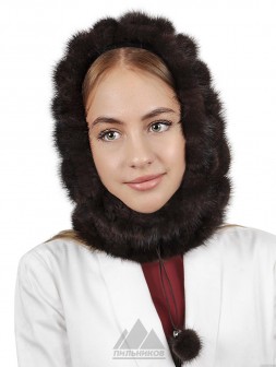 Капюшон «Оксиния» - женский аксессуар из натурального меха норки. Объемная и теплая модель, выполненная путем ввязывания ровных меховых полосок в шерстяную основу. Мех норки выглядит всегда презентабельно, не склонен к истиранию и заломам, а густой однородный ворс прекрасно сохраняет тепло и обладает большим сроком службы. Шикарный капюшон «Оксиния» станет удобной альтернативой для тех, кто не любит носить шапки, его легко снимать и надевать, садясь в машину или заходя в помещение.