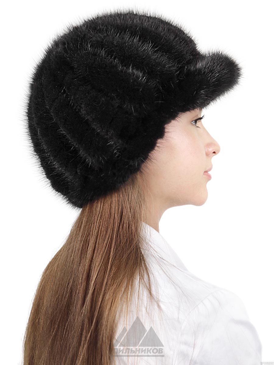 Шапочка зимняя и демисезонная изготовлена в виде кепочки, вязаная из норковых хвостиков. Кепи "Патиссон" выполнена вертикальной вязкой из распущенных норковых хвостов.