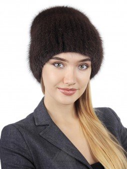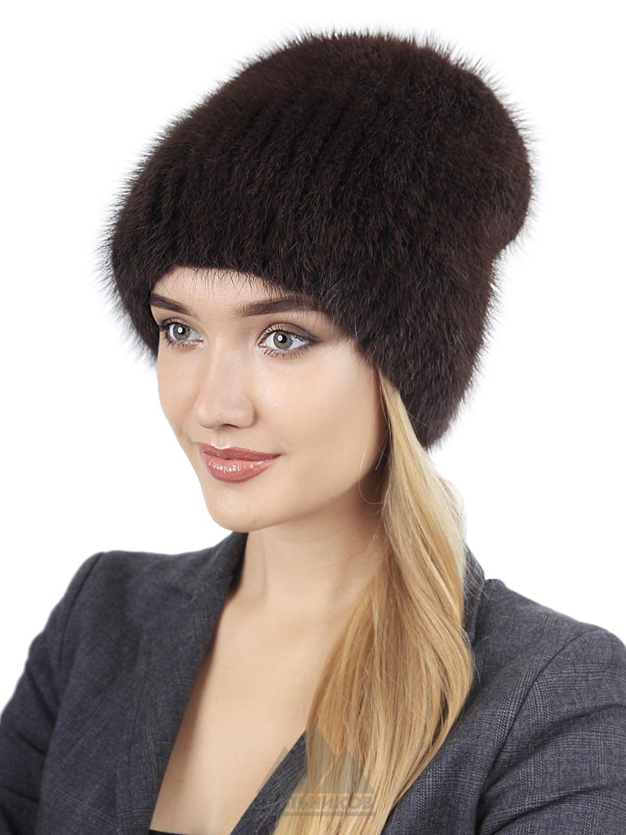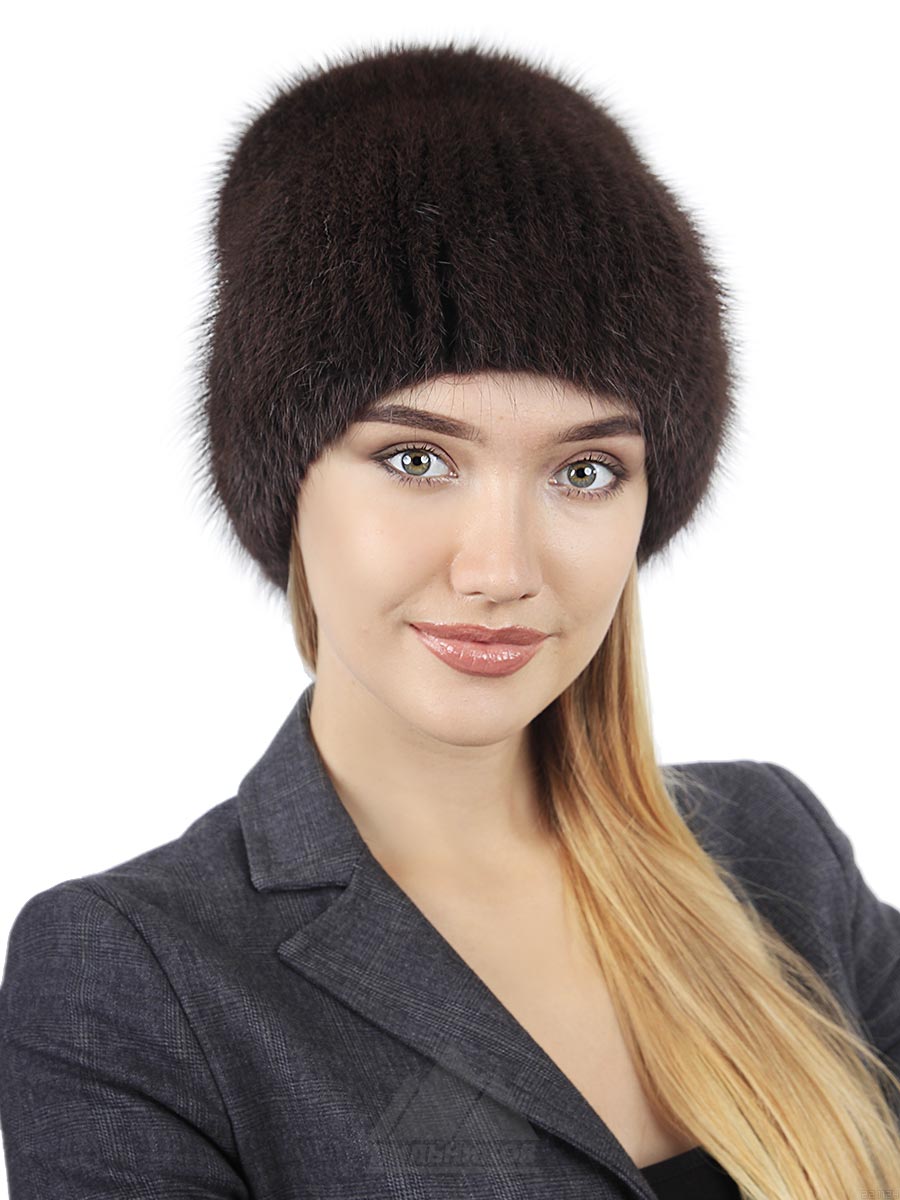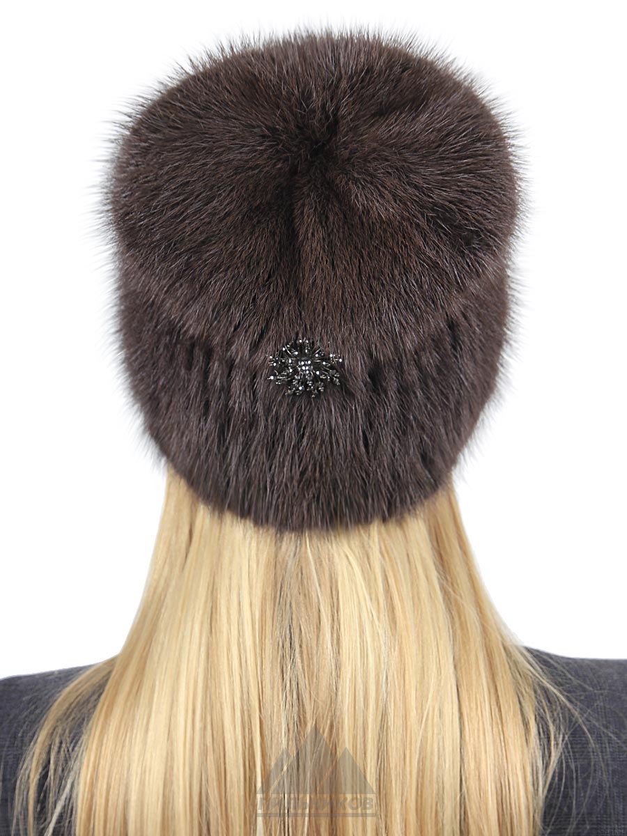 Шапка-вязка «Анэйс» - женский головной убор из натурального меха финской норки на трикотажной основе. Модель облегающей голову формы, задник аккуратно зафиксирован красивой брошью. Ручная работа - полоски меха пришиты к трикотажному колпаку. Удобную посадку по форме головы обеспечивает эластичность основы.