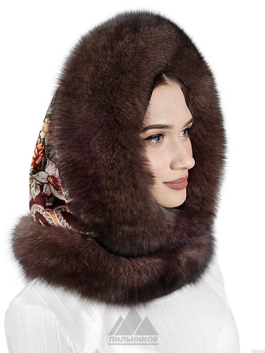 Капюшон «Сесилия» - женский зимний аксессуар из меха песца на основе из настоящего павловопасадского платка. Оригинальная объемная модель, меховая опушка украшает верхний и нижний края. Внутри подкладка из саржевой ткани, размер фиксируется регулятором. Капюшон «Сесилия» теплый, легкий и комфортный, украсит любой зимний наряд.