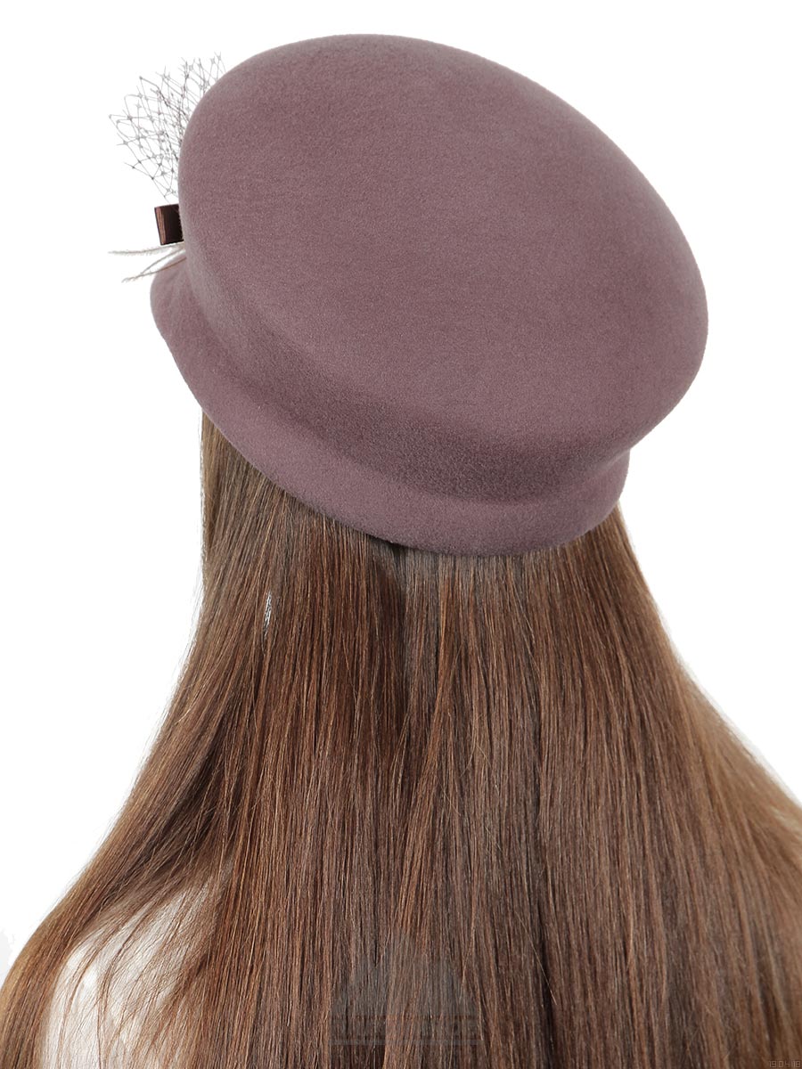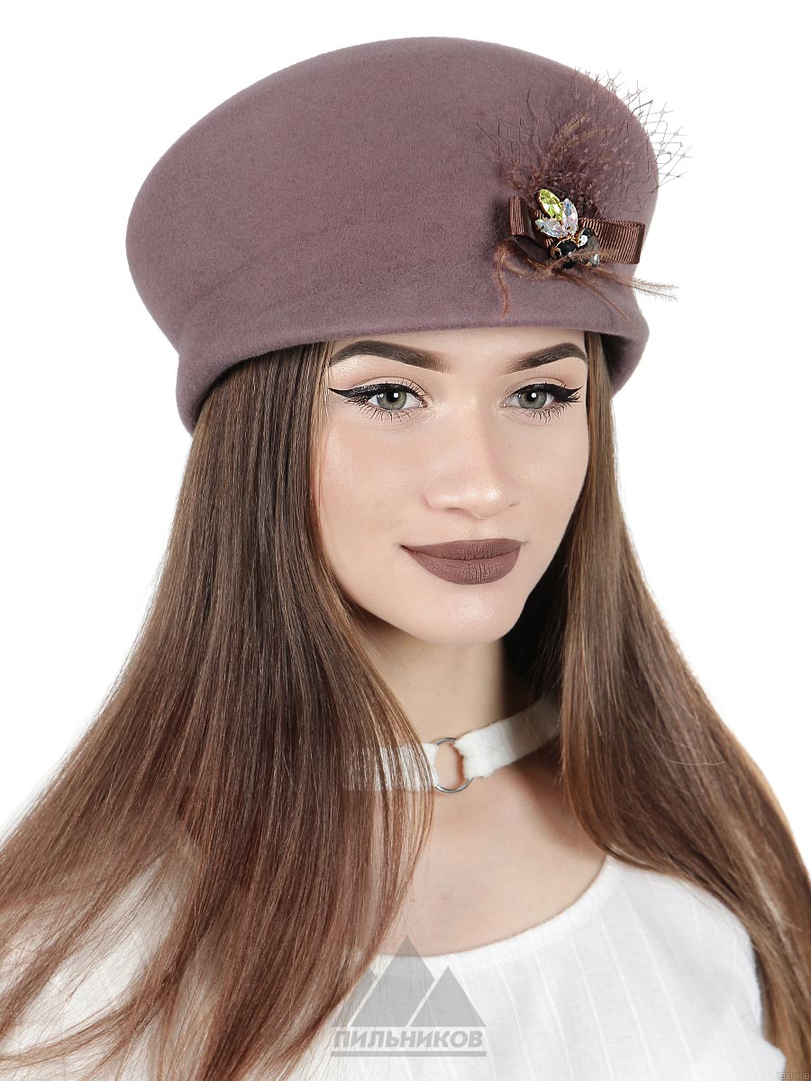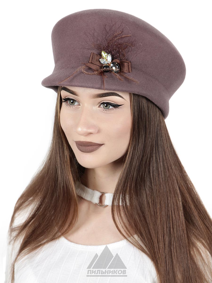 Картуз «Амайя» из фетра. Модель с высокой тульей и небольшим козырьком украшена бантом из атласной ленты и дополнена перьями и вуалью. Внутри подкладка из саржи. Регулятор размера отсутствует. Внутри есть трикотажная вставка, которая является ветрозащитным клапаном.