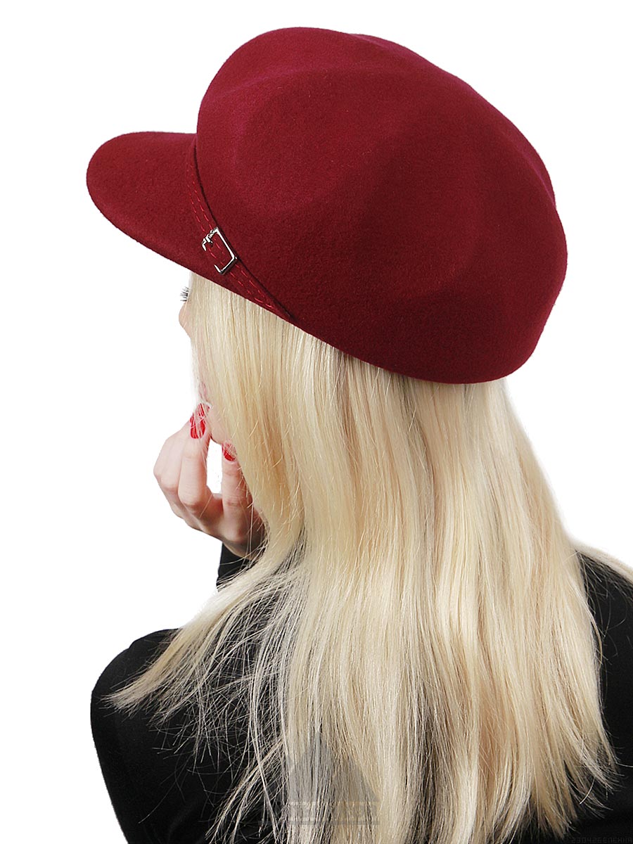 Картуз «Фелисия» выполнен из натурального фетра. Модель с рельефной тульей и небольшим козырьком. Украшением служит декоративный ремешок с металлической пряжкой. Внутри подкладка из саржи.