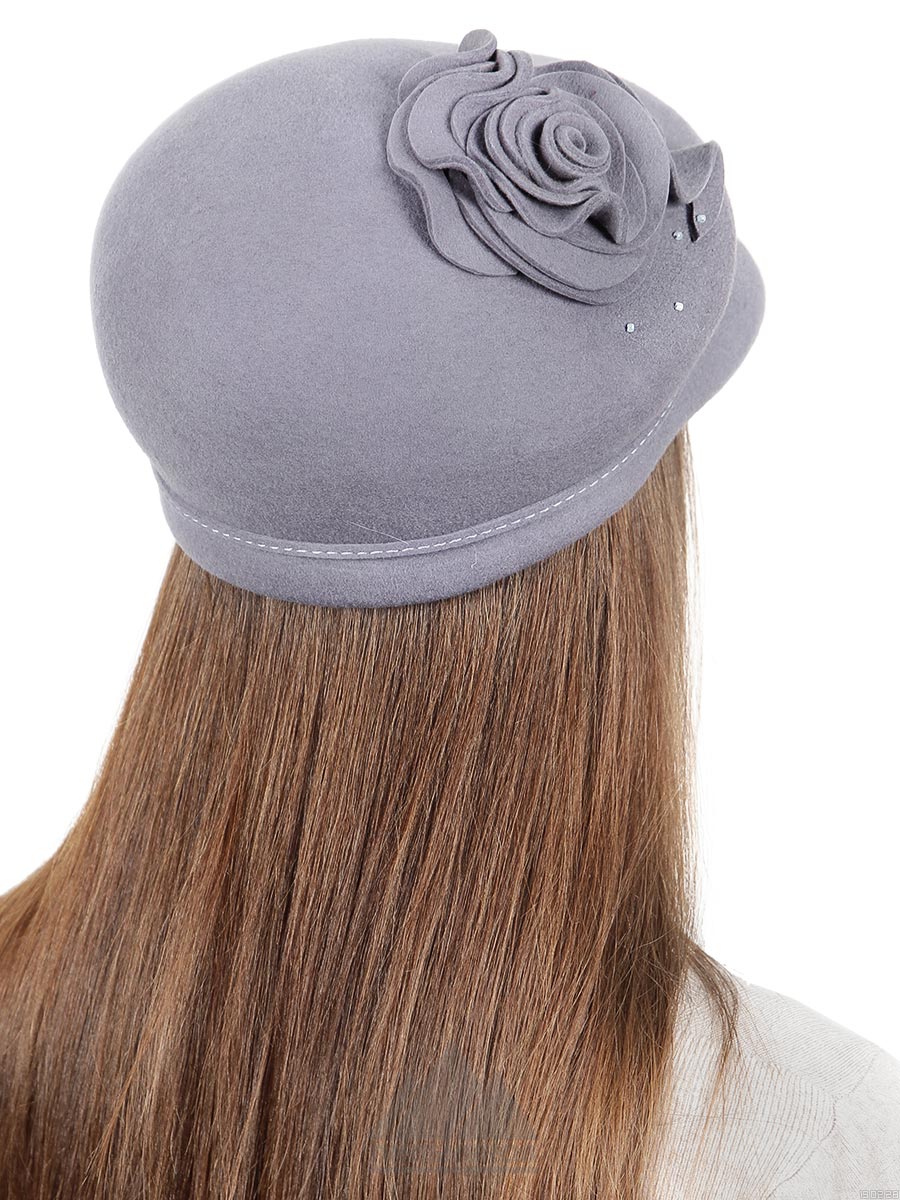 Кепка «Элла» - женский головной убор из натурального фетра. Объемная модель с асимметричной тульей, украшенной цветком сбоку и небольшим козырьком, дополненным маленьким бантиком. Внутри подкладка из саржевой ткани. Кепка «Элла» прекрасно дополнит стильную куртку или классическое пальто, обеспечивая теплом в прохладную погоду.