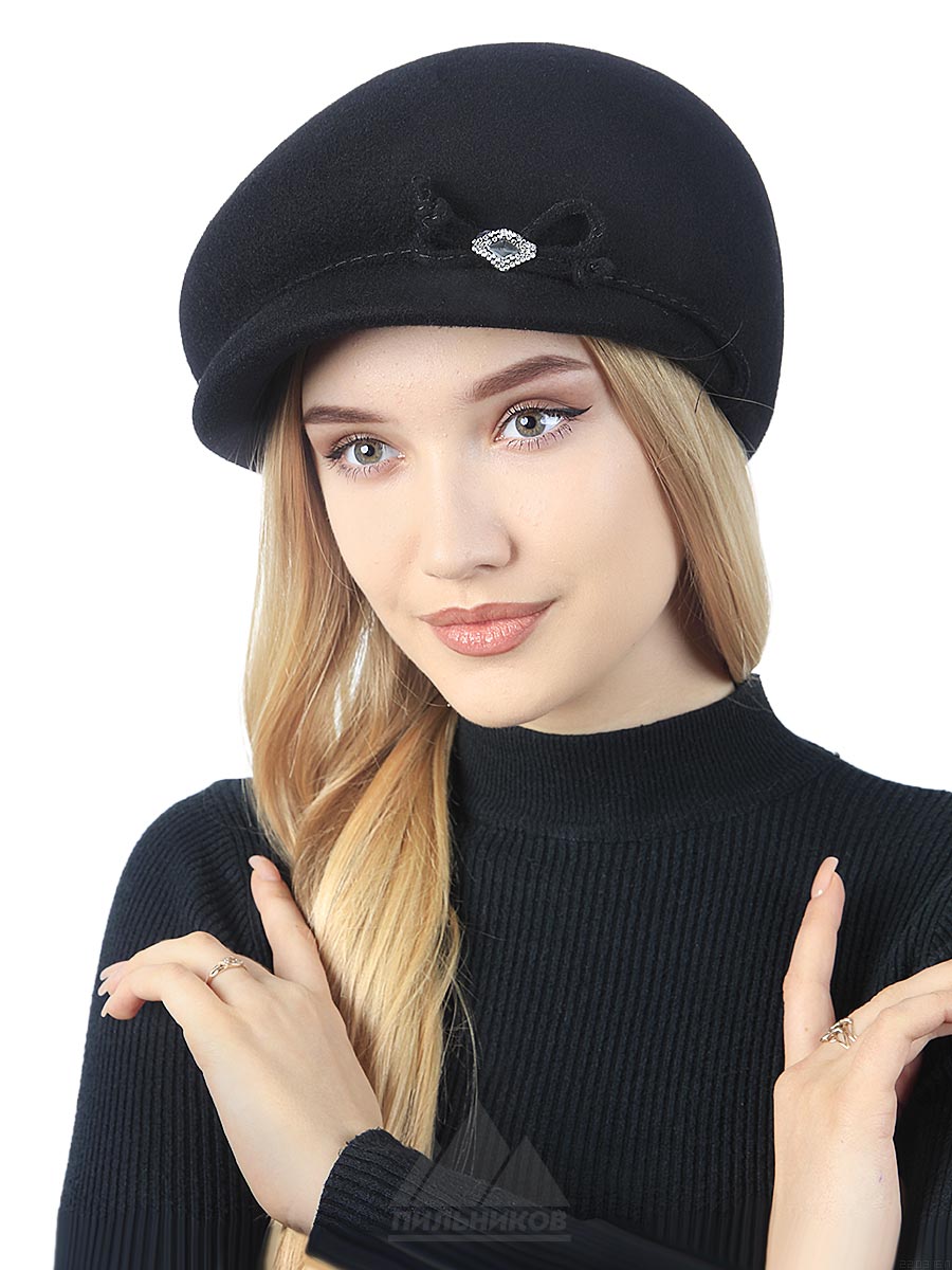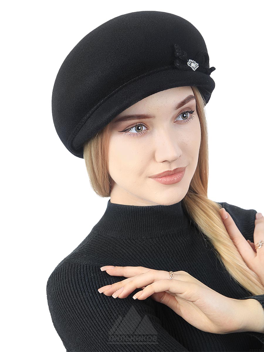 Кепка «Урсула» - женский головной убор из натурального фетра. Объемная модель с закругленной тульей и небольшим козырьком, сбоку аккуратное украшение с брошью. Внутри подкладка из саржевой ткани, удобную посадку по форме головы обеспечивает трикотажный стабилизатор размера. Кепка «Урсула» для стильных и элегантных дам, обеспечит теплом в прохладную погоду.