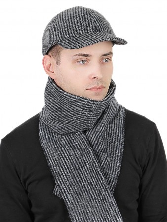 Комплект «Мартин» состоит из бейсболки и шарфа, которые изготовлены из шерсти. Бейсболка с небольшим козырьком, внутри подкладка из стеганой саржи и ушки для защиты от ветра. Для регулировки размера используется металлический ремешок-фиксатор. Длинный теплый шарф выполнен в цвет головного убора. Длинна шарфа 160 см, ширина 24 см.