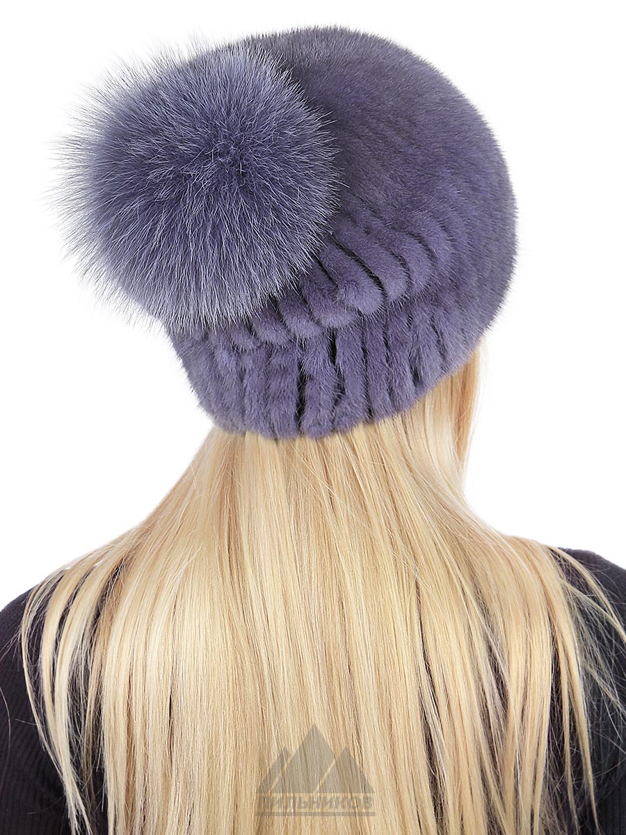 Шапка «Сенди» - женский головной убор из натурального меха норки. Удлиненная модель с помпоном из песца. Изделие изготовлено путем аккуратной нашивки ровных полос меха на трикотажную основу. Ручная работа. Удобную посадку по форме головы обеспечивает эластичность вязаной полушерстяной ткани.