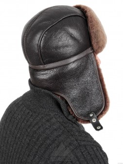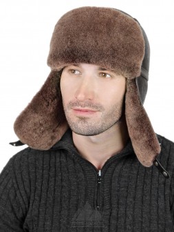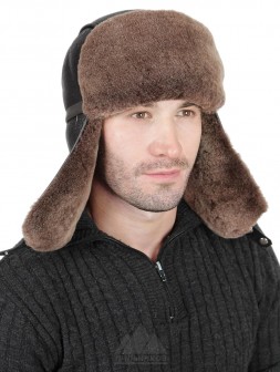 Наутилус / Шапка-ушанка из мутона на кожаной тулье