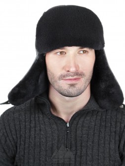 Омега / Шапка-ушанка из мутона на мягкой коже