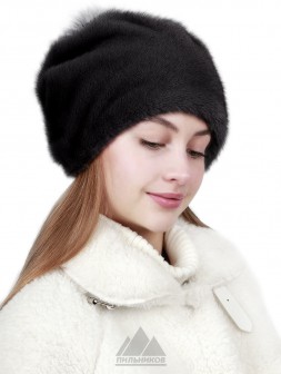 Инжи / Шапка женская из вязаного трикотажа с флисом