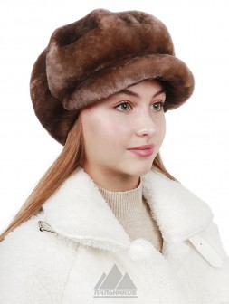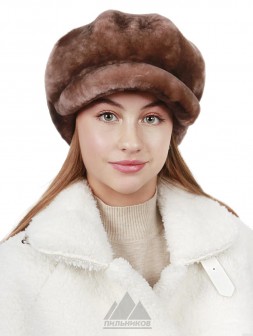 Изабелла / Шапка из меха ондатры с опушкой из лисы
