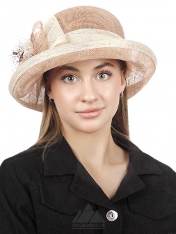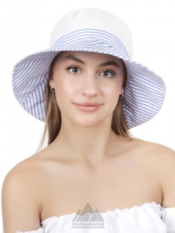 Эмили / Шляпа с мягким полем на лето из льна в полосочку