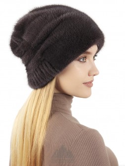 Елица / Объемная шапка из вязаной норки