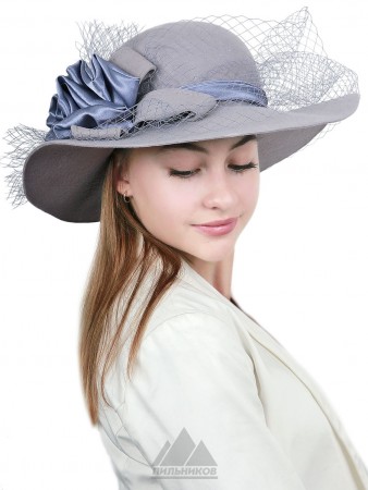 Демисезонная женская шляпа «Ессения» из фетра. Модель с высокой округлой тульей и широким полем выполнена из высококачественного шерстяного фетра. Сбоку изделие украшает объемная композиция в виде бутонов цветов из атласа, по всей окружности тулья оформляется летной и легкой вуалью. В подкладке из саржевой ткани установлен регулятор для удобной фиксации размера. Шляпка «Ессения» станет украшением любого наряда, делая его ярким и шикарным.