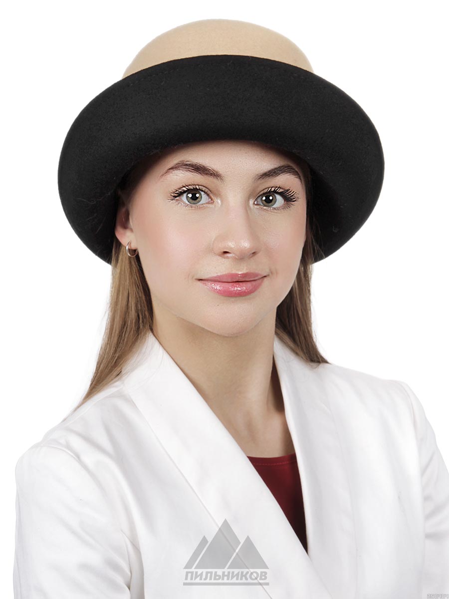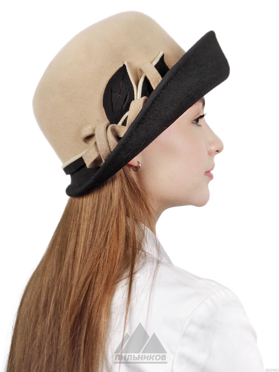 Шляпа «Сальма» - женский головной убор из фетра. Классическая модель с закругленной тульей и малым полем, по всей окружности загнутым вверх. Изделие украшено сбоку оригинальным декором из фетра. Демисезонный головной убор с саржевой подкладкой и регулятором размера.