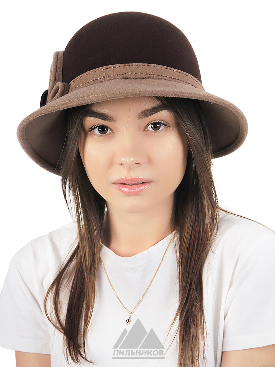 Шляпка «Лиана» - женский головной убор из высококачественного фетра. Двухцветная модель с полями средней ширины и высокой закругленной тульей. Сбоку расположено оригинальное украшение из того же фетра. Подкладка из саржевой ткани, внутри удобный регулятор размера. Шляпка «Лиана» дополнит классические элегантные наряды и согреет в прохладную погоду.