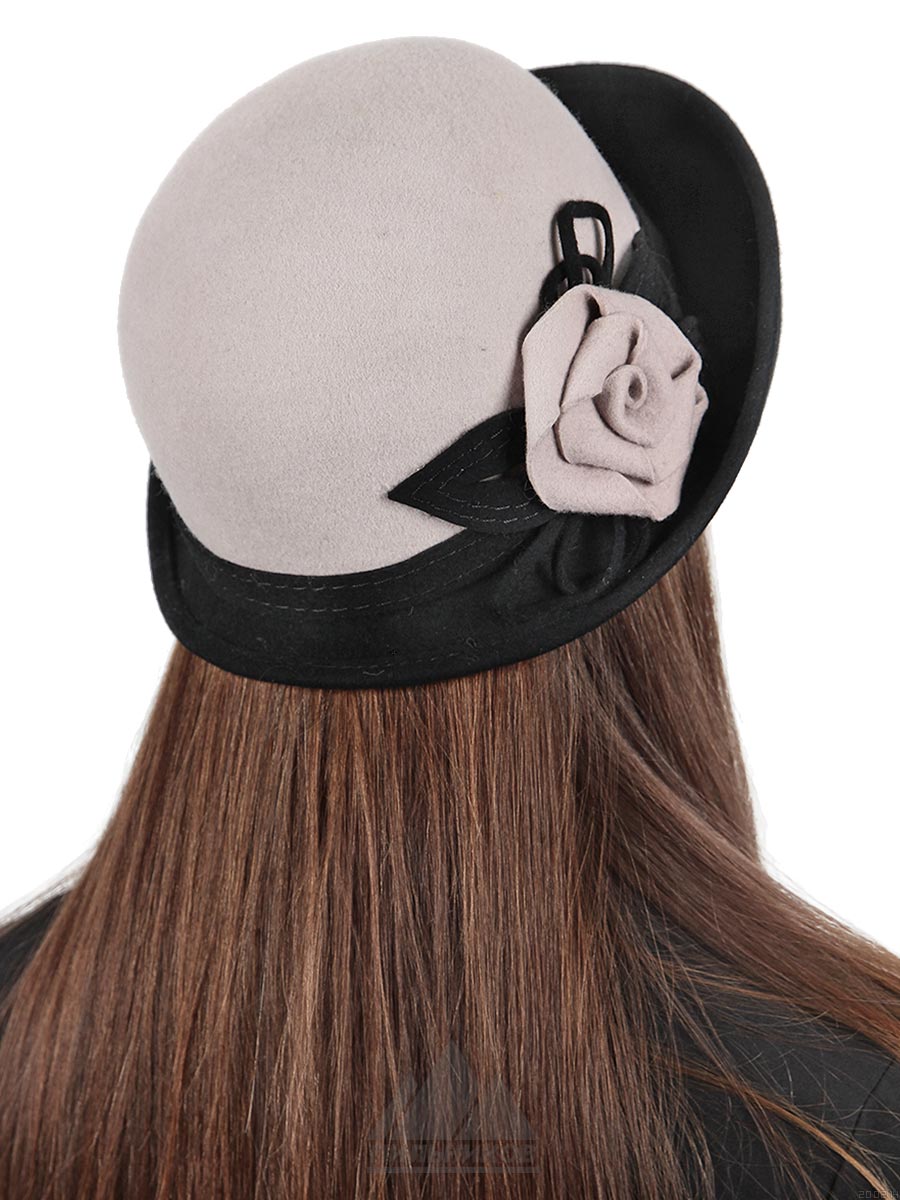 Шляпка «Люсьена» - женский головной убор из высококачественного фетра. Двухцветная модель с малым полем, приподнятым вверх. Округлая тулья украшена атласной лентой у основания и оригинальной композицией сбоку. Демисезонный головной убор с саржевой подкладкой и регулятором размера, наличие которого обеспечивает удобную посадку по форме головы. Шляпка «Люсьена» сделает образ элегантным и нарядным, уберегая голову от ветра и осадков.