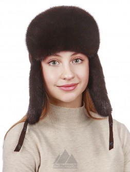 Дженифер / Шапка ушанка зимняя из норки на замше