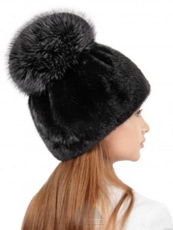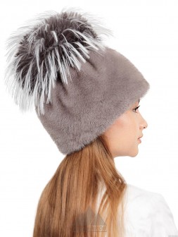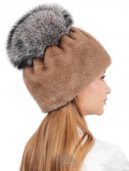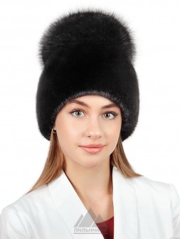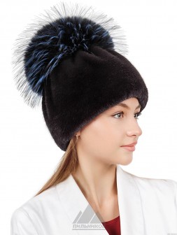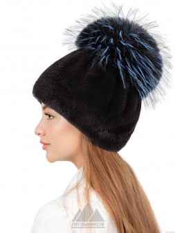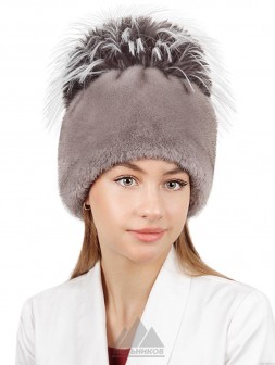 Белочка / Ондатровая шапка сноп с кисточками из лисы