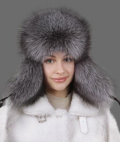 Артемида / Шапка ушанка из лисы BlueFrost на коже