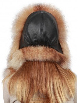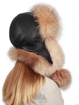Кимберли / Кепка-ушанка из натуральной кожи с мехом лисы