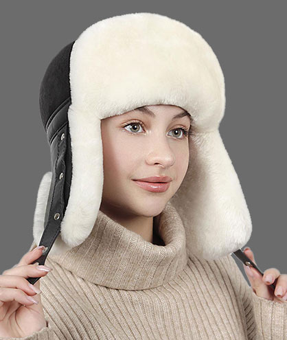 Хильда / Шапка с ушами из мутона на натуральной коже