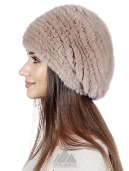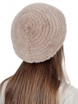 Карла / Берет вязаный из норки на трикотаже