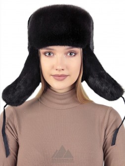 Ланетта / Шапка ушанка зимняя из норки на замше