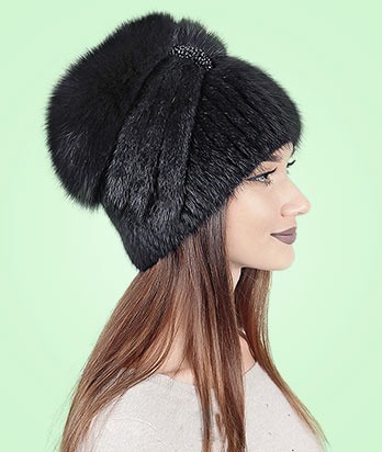 Изабелла / Шапка из меха ондатры с опушкой из лисы
