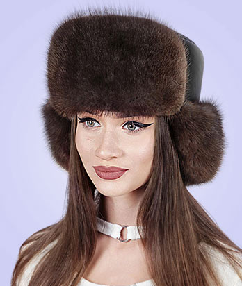 Ариана / Шапка ушанка зимняя из ондатры на коже