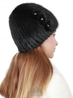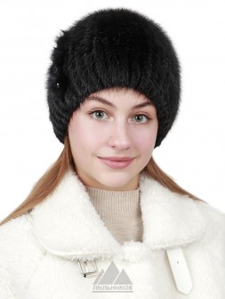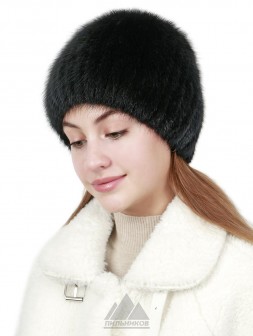 Аннетт / Вязаная шапка из ондатры с помпоном