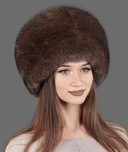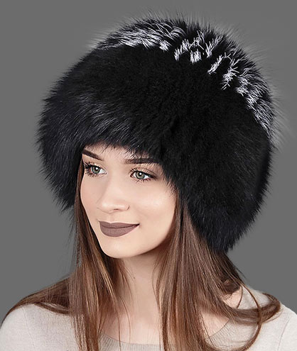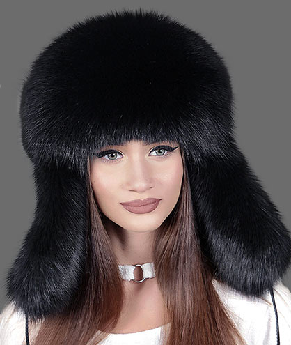 Касара / Шапка-ушанка из песца на кожаной тулье